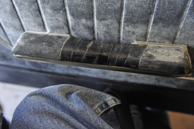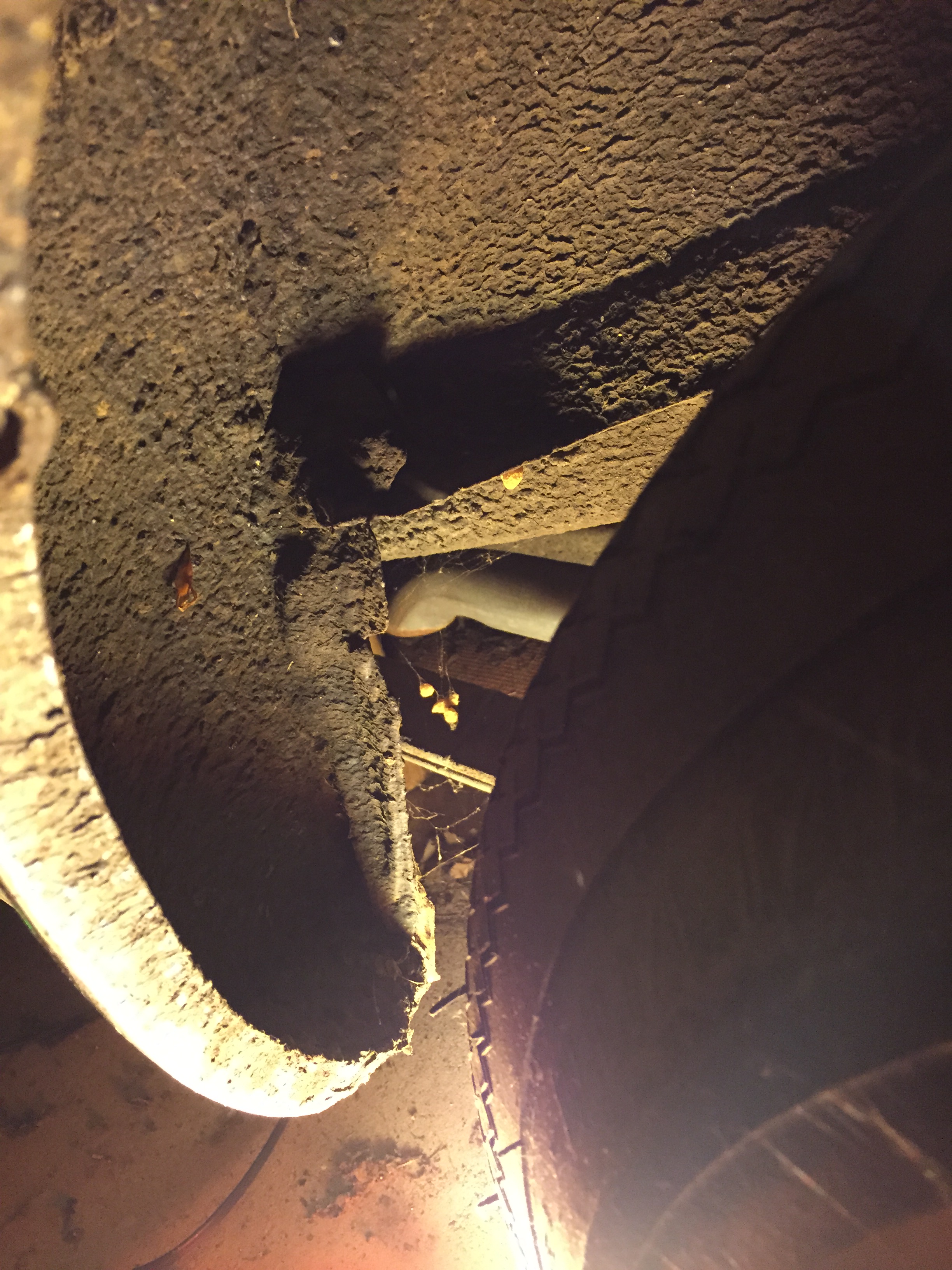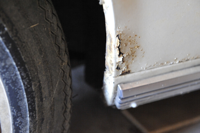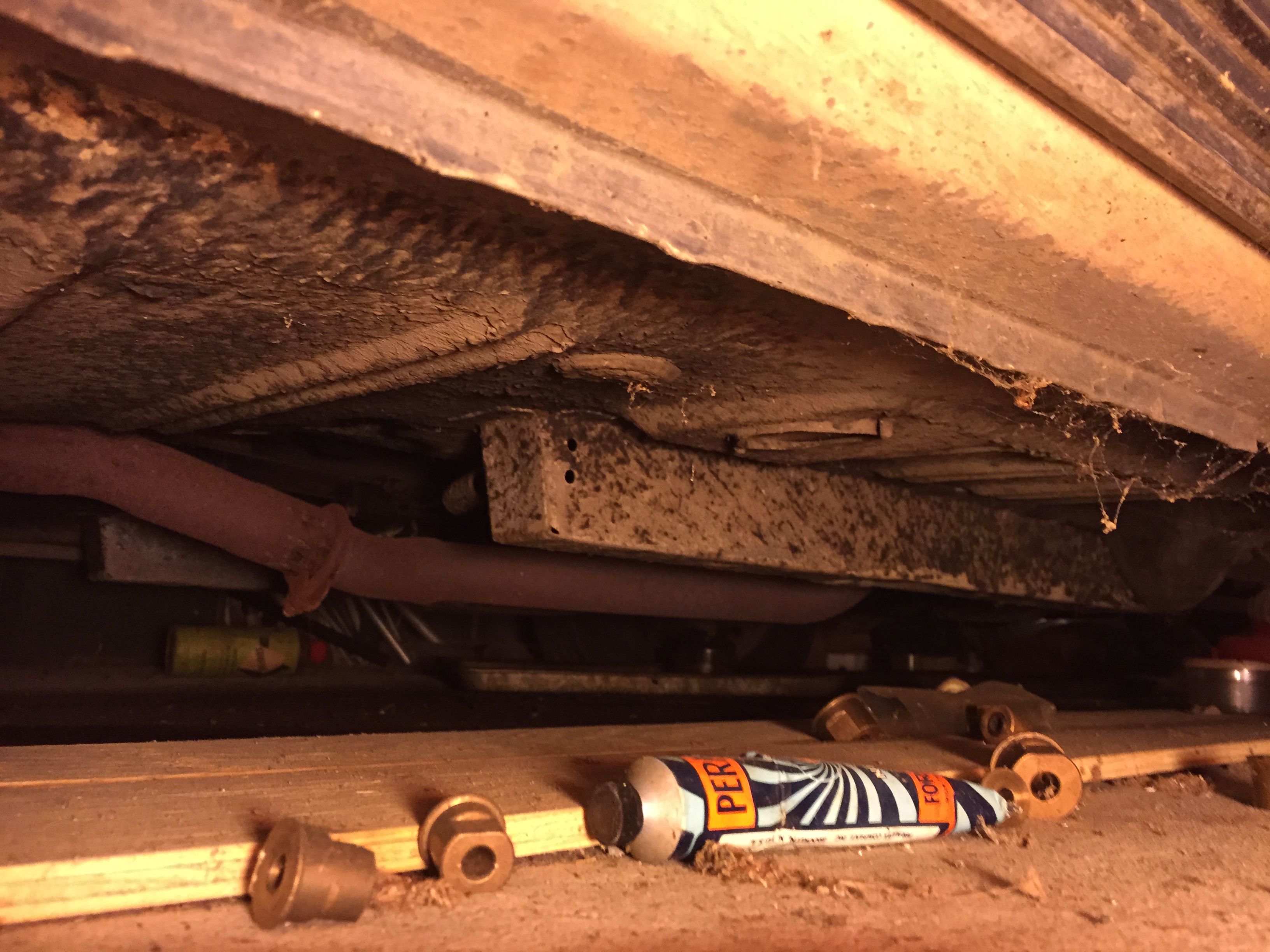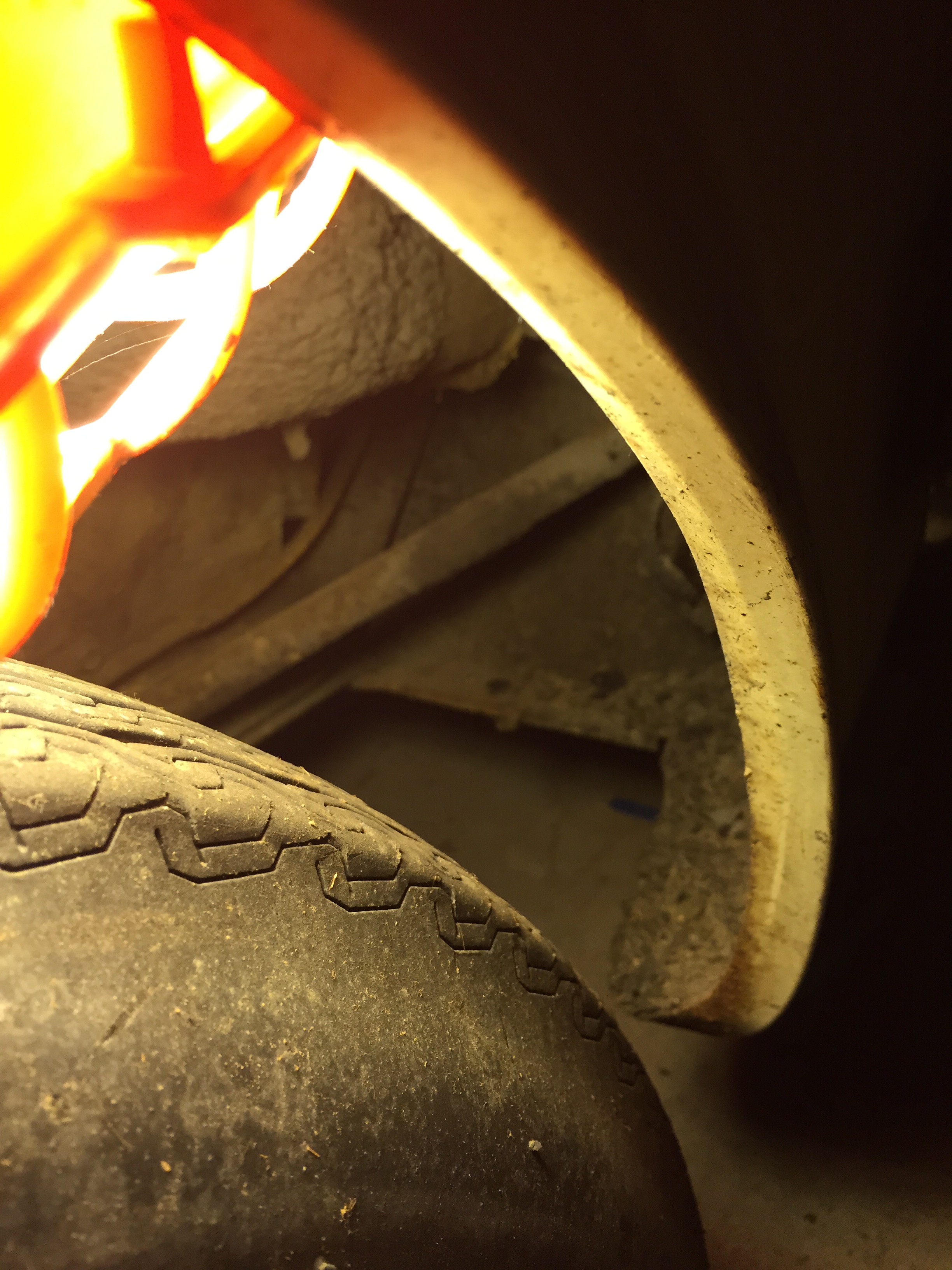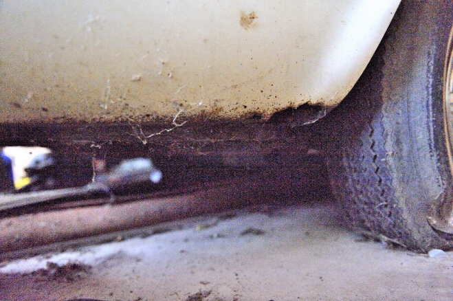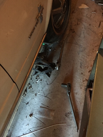 At least one of the front brakes were frozen as we could not push the car outside. The brake pedal also went right to the floor, so the brakes will need repair.