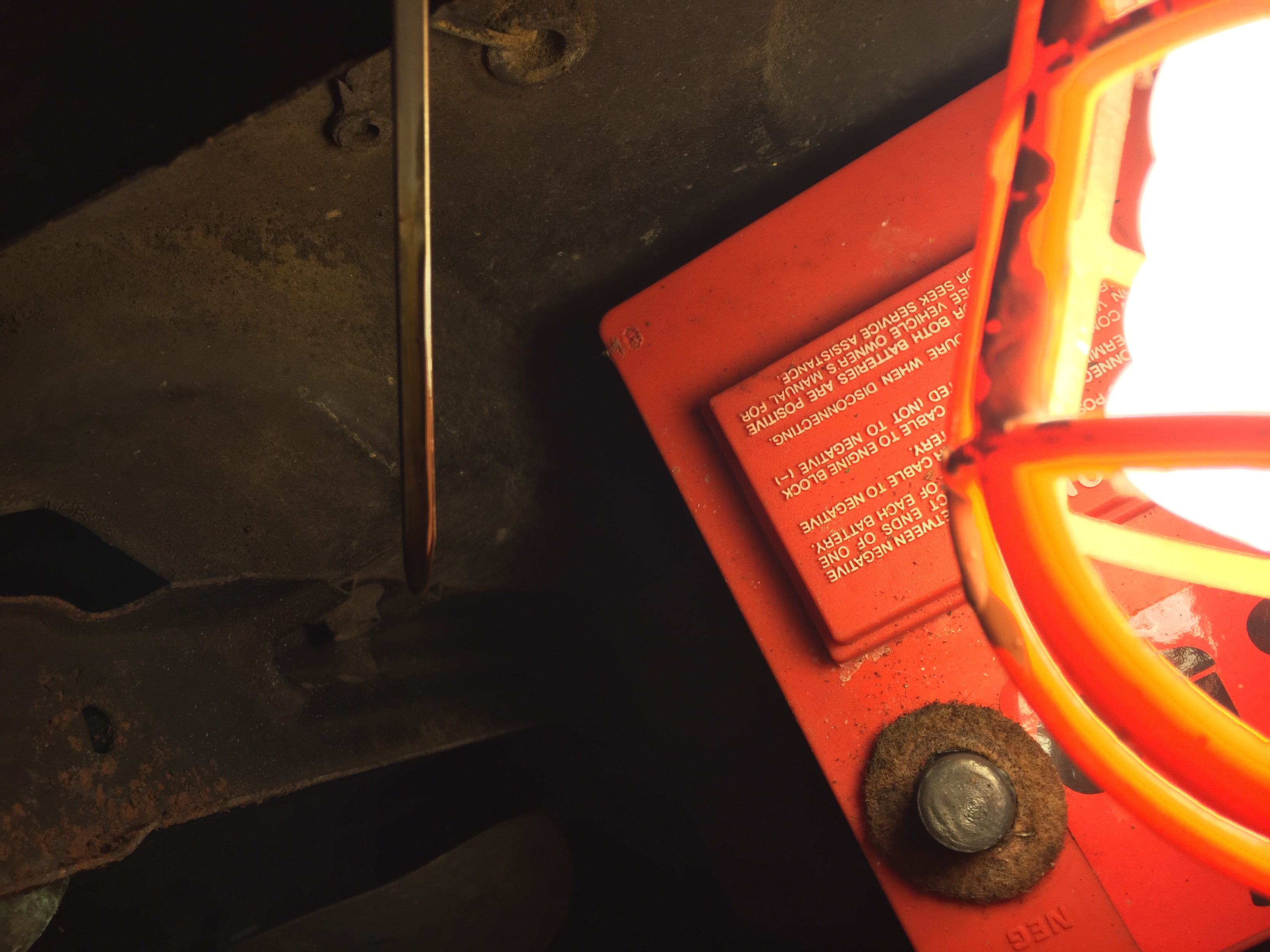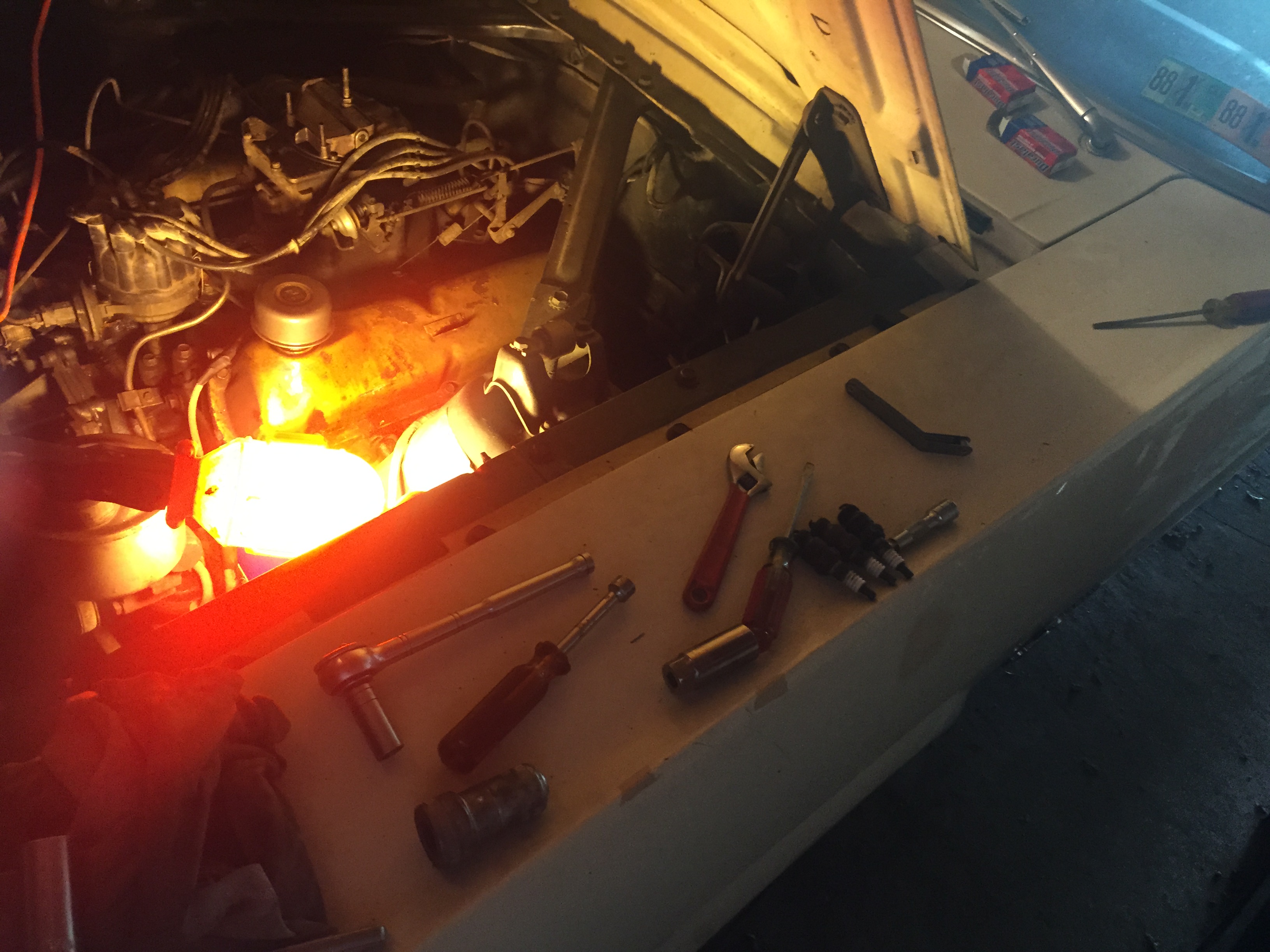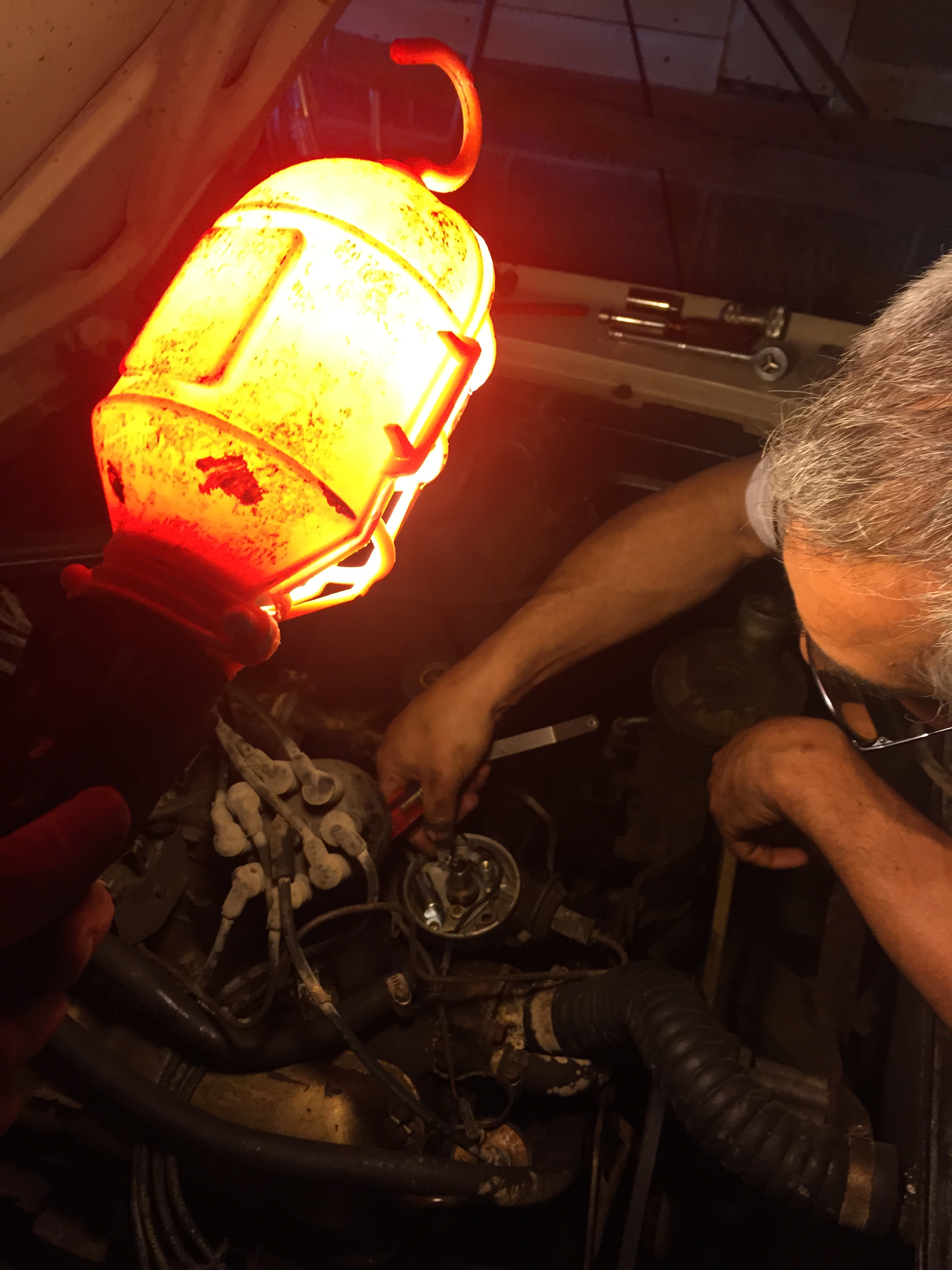 Changed battery, oil, spark plugs, condensor, points and fuel filter. Topped off coolant and transmission fluid. Then bypassed the 27 year old gas in the gas tank and attached the fuel pump to a gas can.